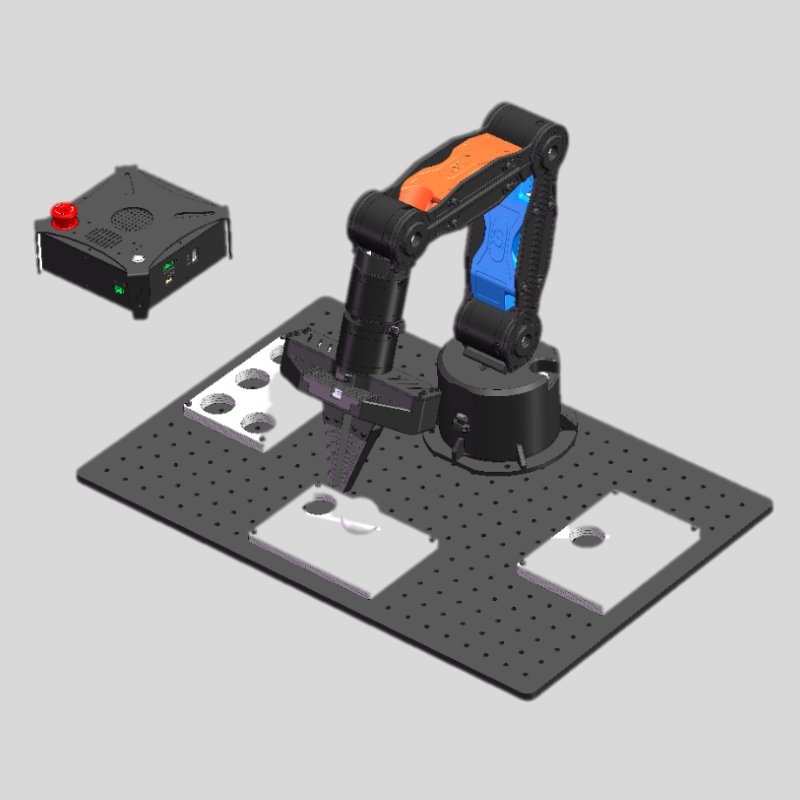 智能工业机械臂由机械臂、边缘计算AI盒、上位机软件及调试工具等组成。集传感器、语音识别、三维仿真等众多技术于一体,可实现机械臂控制与多传感器组合应用。 机械臂与上位机配合可实现机械臂不同动作的控制,如夹取、传递、流水线等运动控制功能;边缘计算AI盒为人工智能图像提供算力;调试工具保证了使用者可以便捷地 进行开发调试工作。实训平台提供丰富的硬件资源与软件系统,保障学生能够充分掌握机械臂系统开发技术与人工智能技术。
